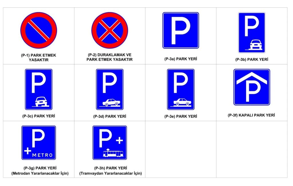 Sayısı oldukça az olan bu işaretler arasında en yaygın olanlarını park etmek yasaktır, duraklamak ve park etmek yasaktır gibi levhalar oluşturuyor.